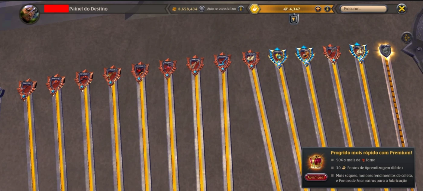 Vendo com Albion online 1.02B de fama, algumas armas no 120