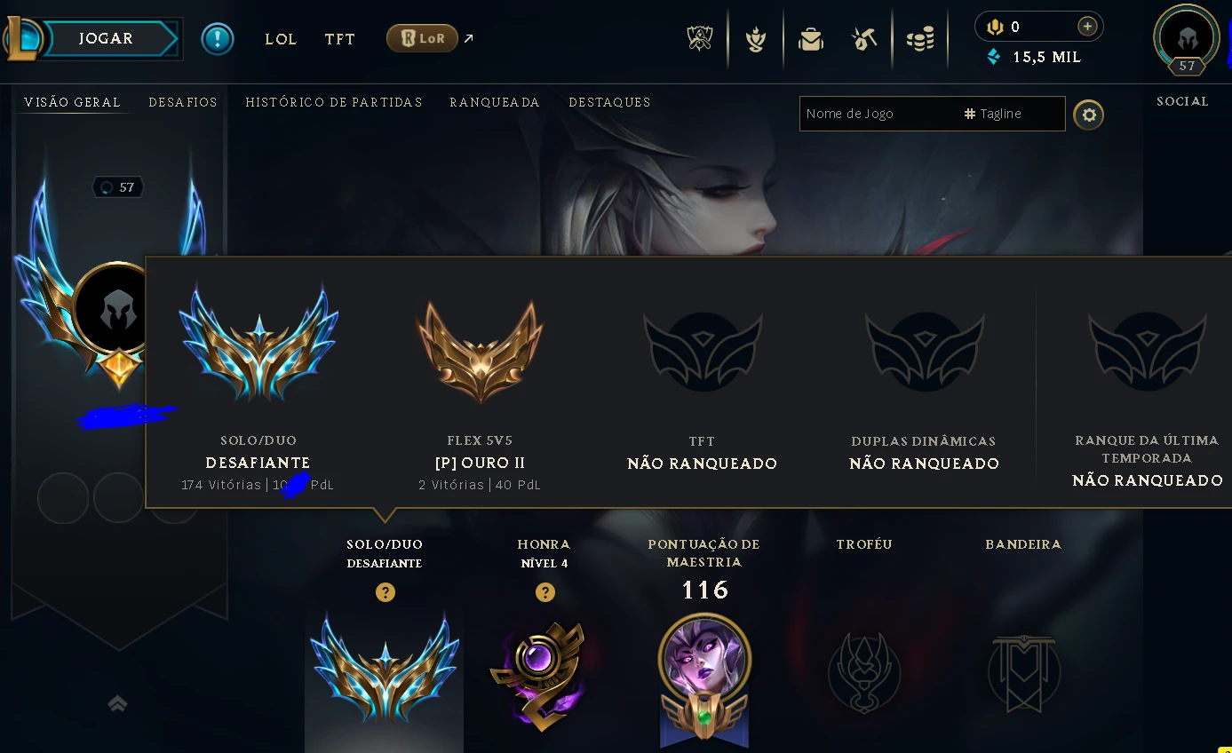 Conta Challenger lol 1k+ pdl 70% de winrate - League of Legends