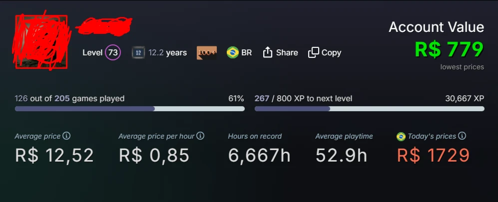STEAM NÍVEL 73 - 175 JOGOS - 95 INSIGNIAS -12 ANOS - COM VAC