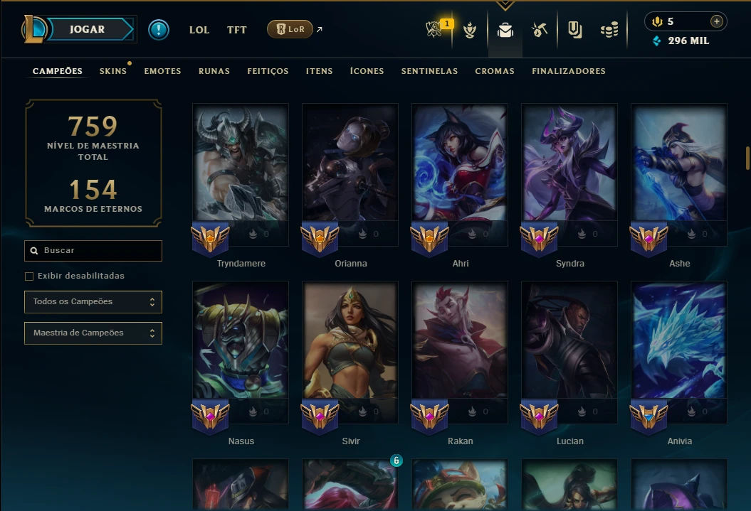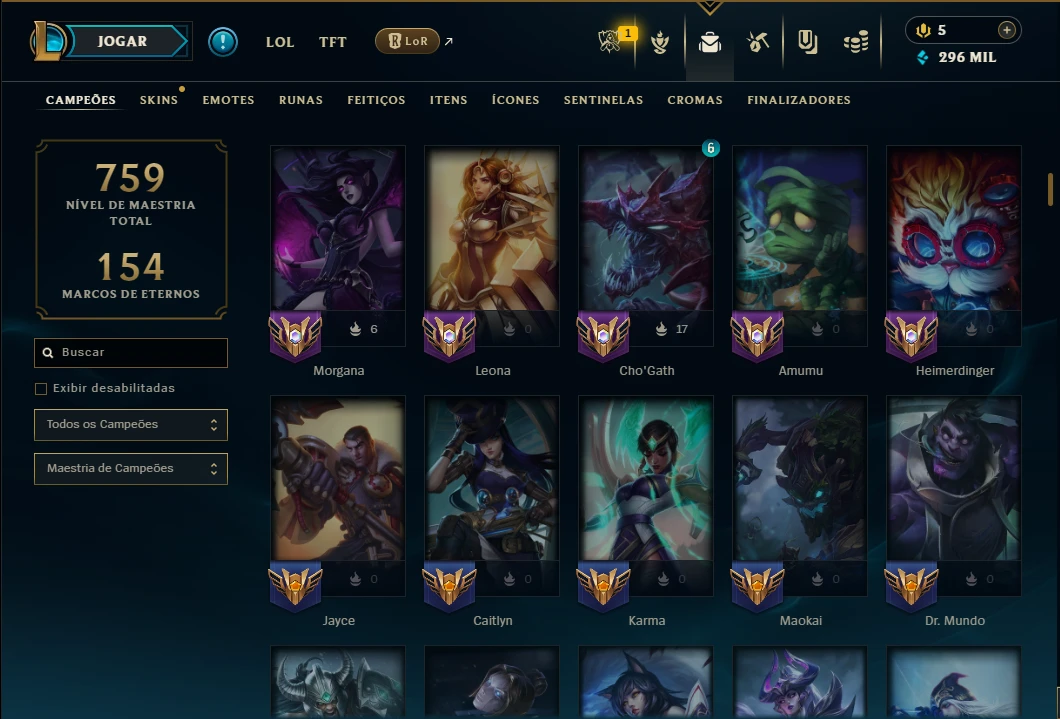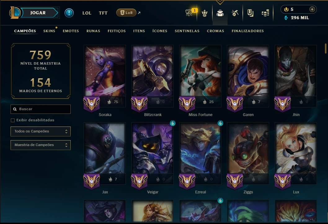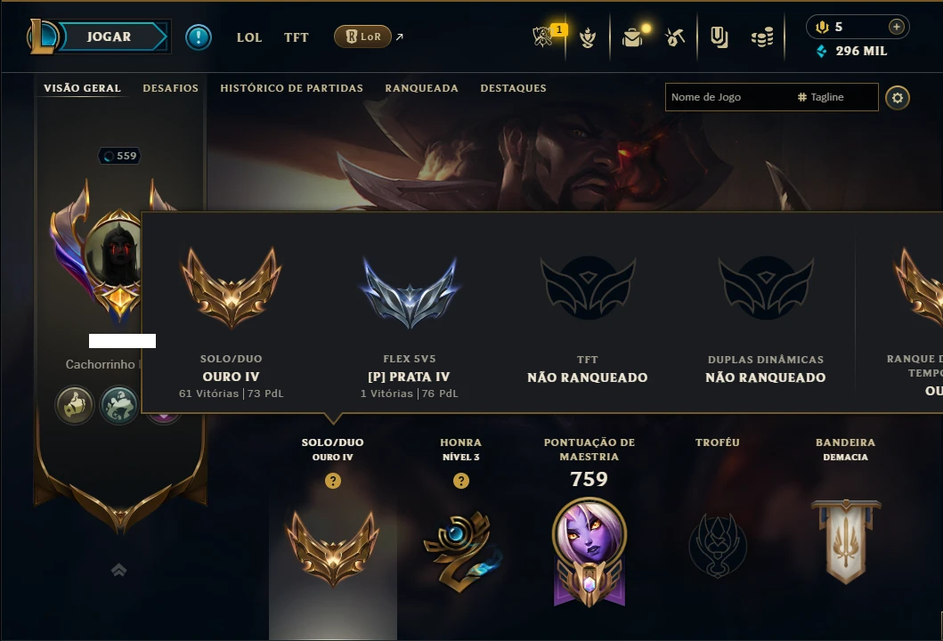 Ouro 4 com TODOS os Champs e 198 Skins ( SUP / ADC ) - League of Legends LOL