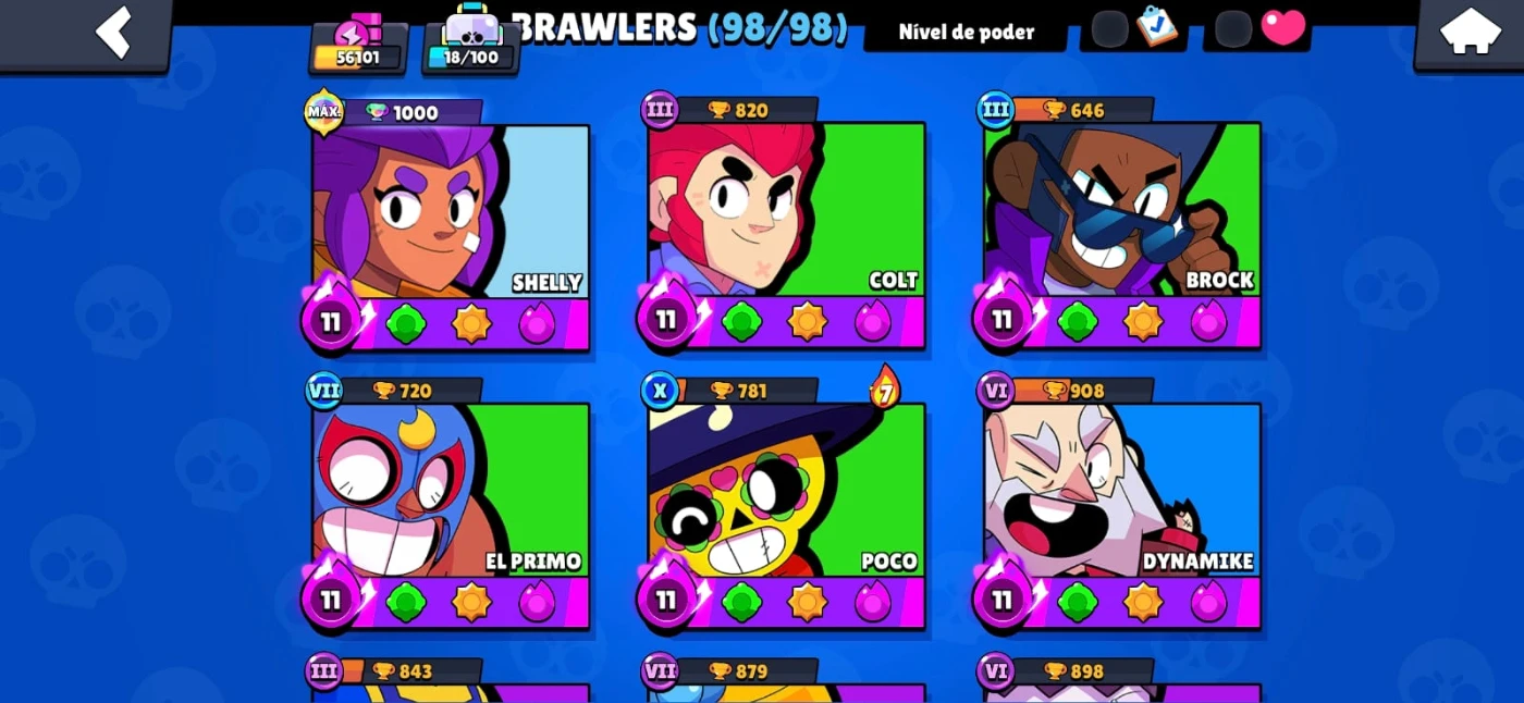 Conta Brawl Stars 98/98 com mais de 286 skins e itens raros