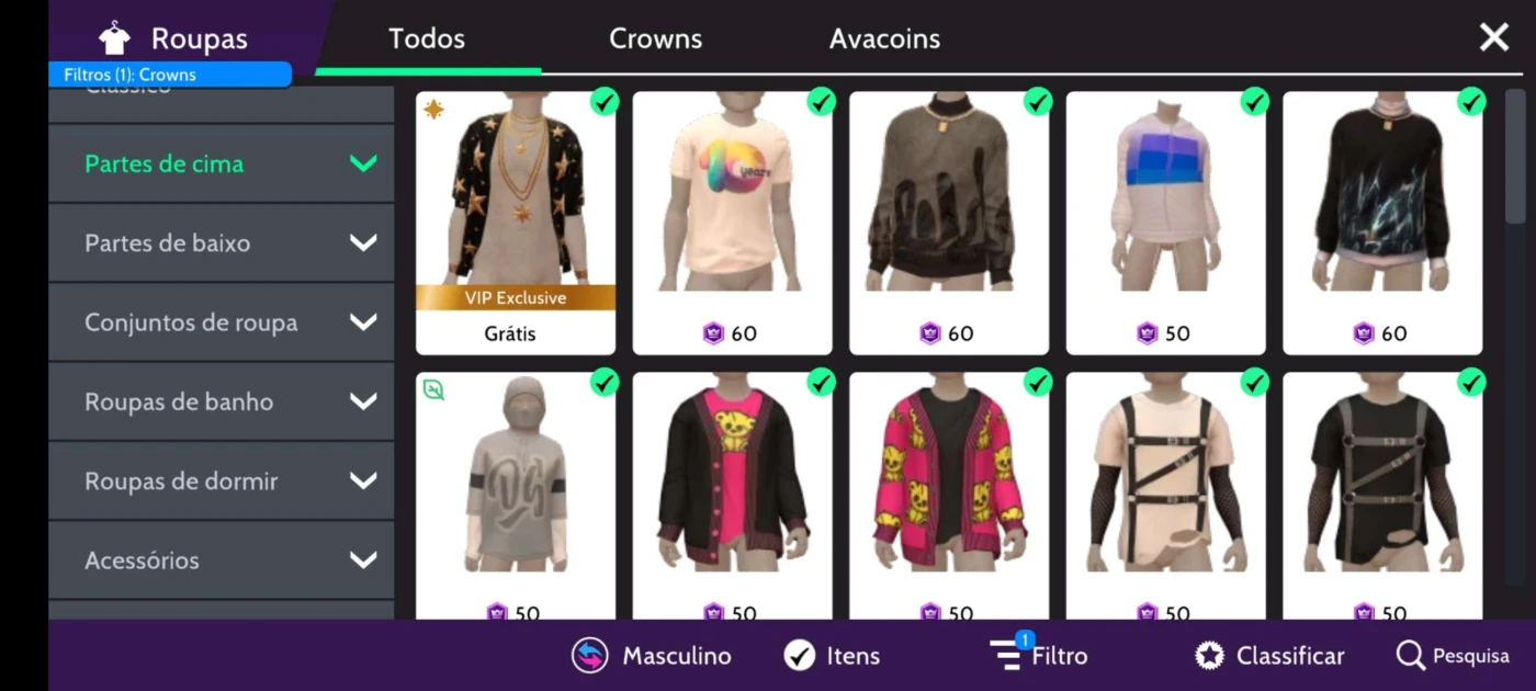 Conta tem muitas roupas raras, muitos itens cronws, vários pets, conta muito braba muito rara, várias insígnia contém a insígnia da moda entre outras antigas, é as mais recentes tbm..