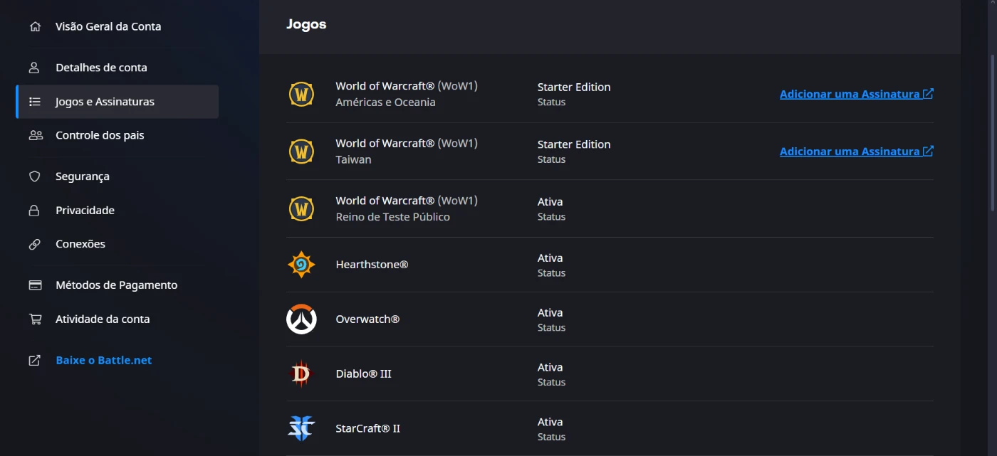 Conta wow - Blizzard