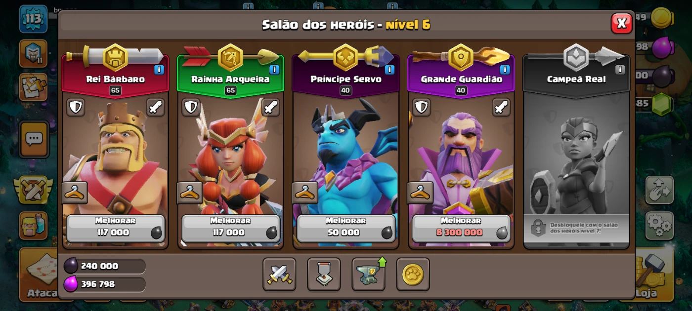 Cv12 FULL TOP DEMAIS - 6 equipamentos épicos; Só faltar upar algumas tropas no laboratório; Conta filé para quem não quer começar do zero; 2385 gemas para comprar mais 1 equipamentos na loja; + skin de herói + paisagem + itens mágicos Transfiro a conta para o email do comprador no ato da compra; OBS: Estou jogando e upando a vila até vender;