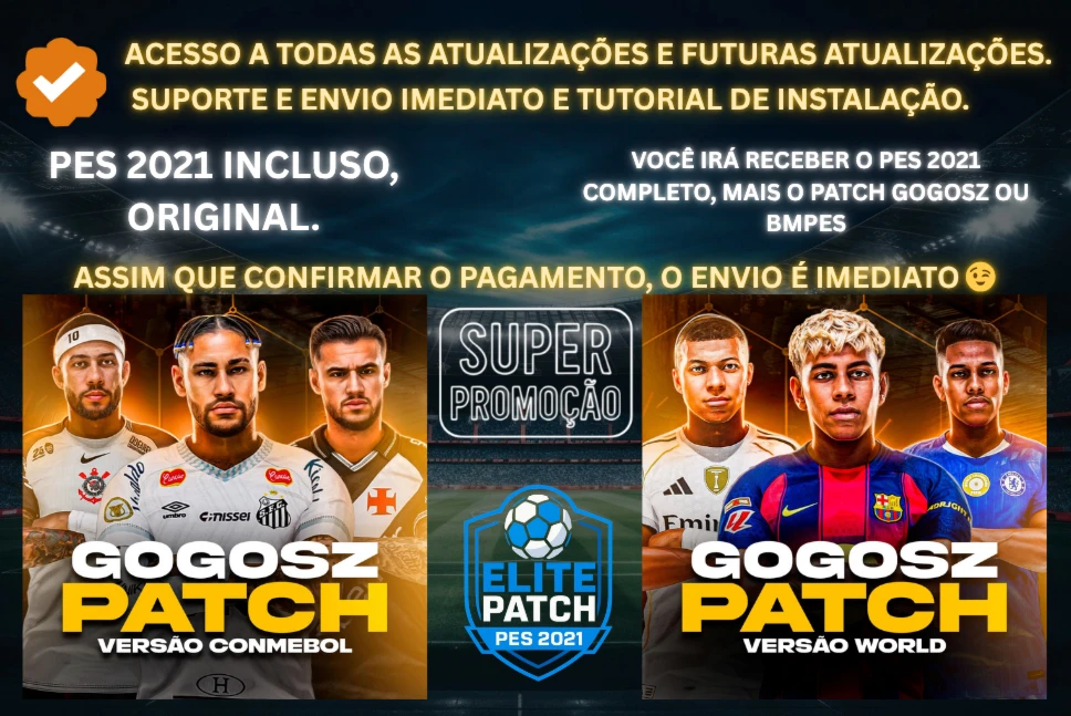 ⚽ PES 2021 COMPLETO + PATCH À SUA ESCOLHA (GOGOSZ WORLD v9.2 + CONMEBOL v1.2 OU BMPES 2026)