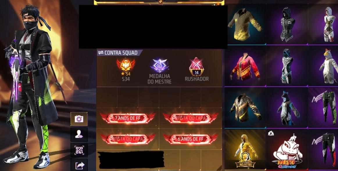 Relíquia Quase 8 Ano Nível 65: Collab Naruto Intensa + Evolu - Free Fire