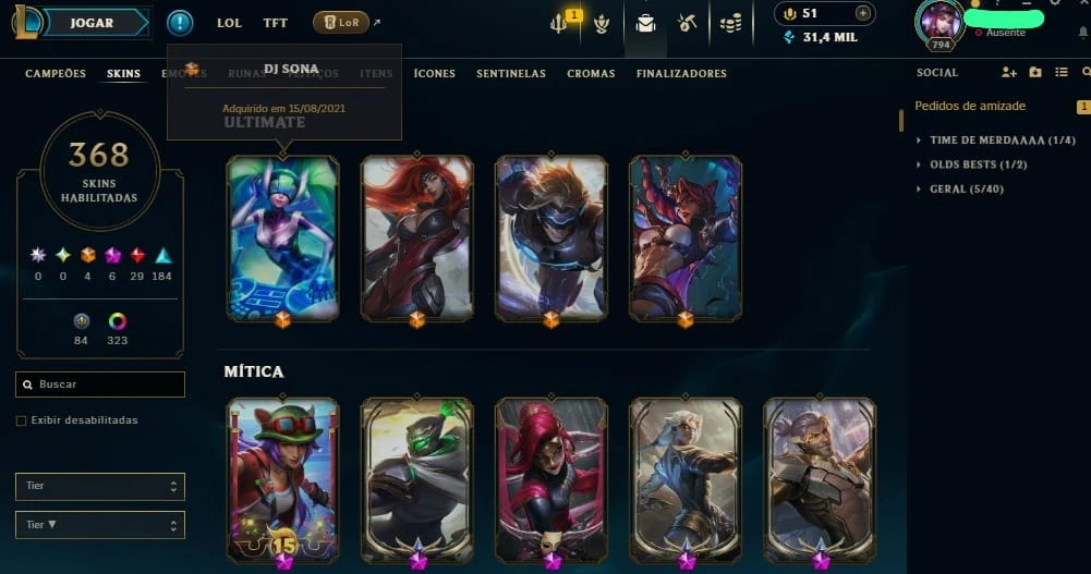 Conta De Lol (+350 Skin, +250 Cromas E Todos Os Campeões)