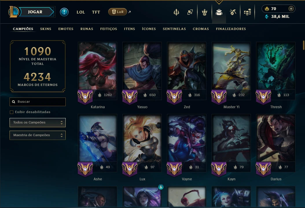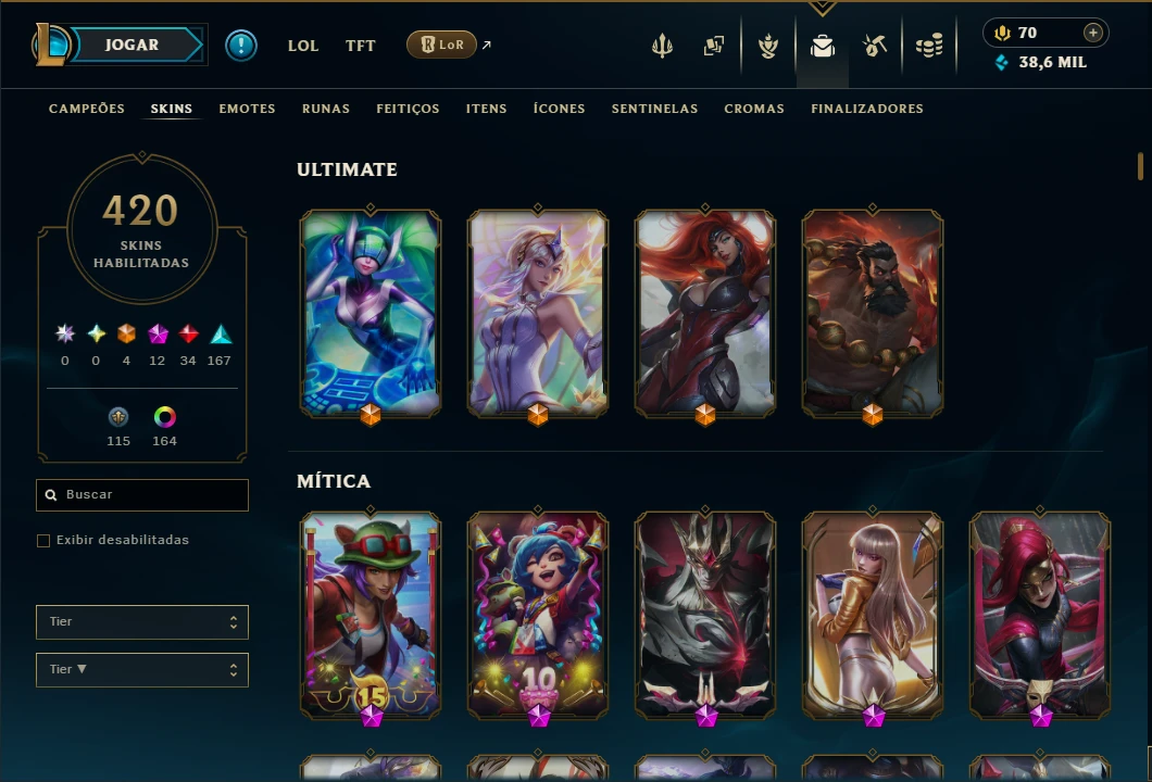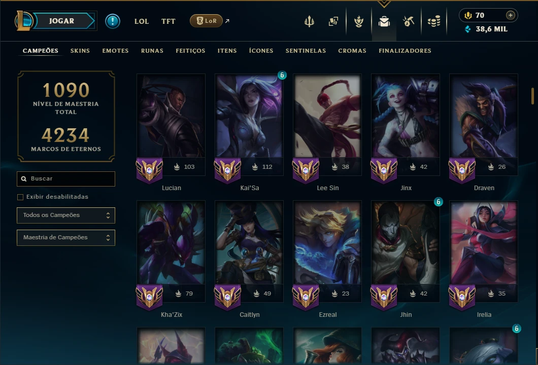 Diamante 4 com TODOS os Champs e 420 Skins +7 Prestigios
