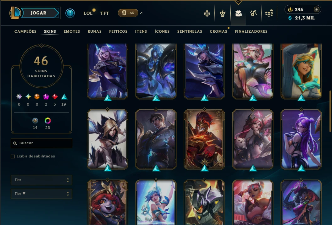 Platina 2 com 130 Champs e 46 Skins +2 Prestigios +1 Rara