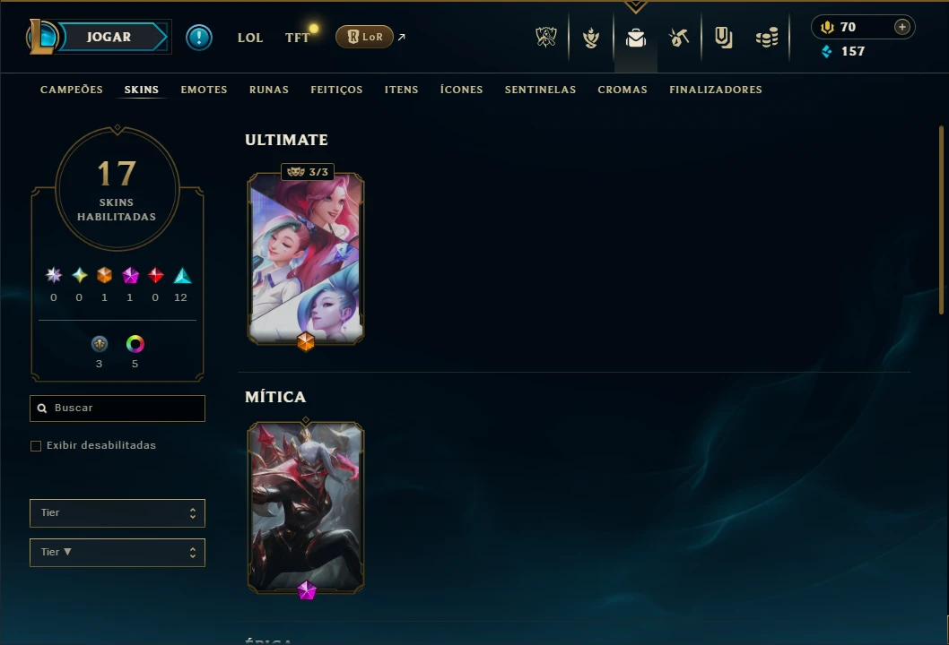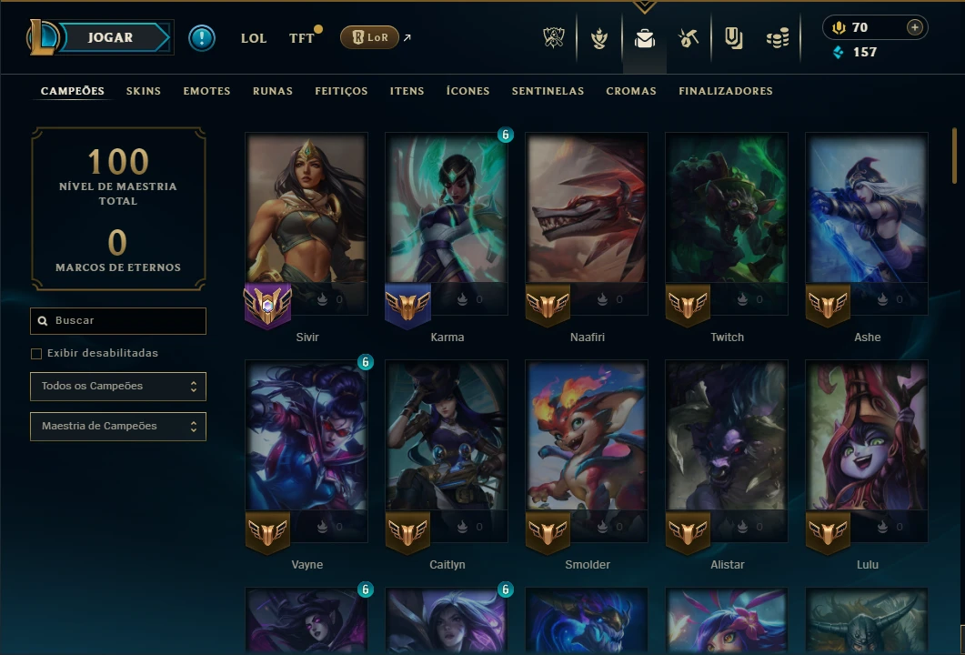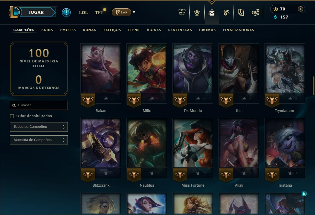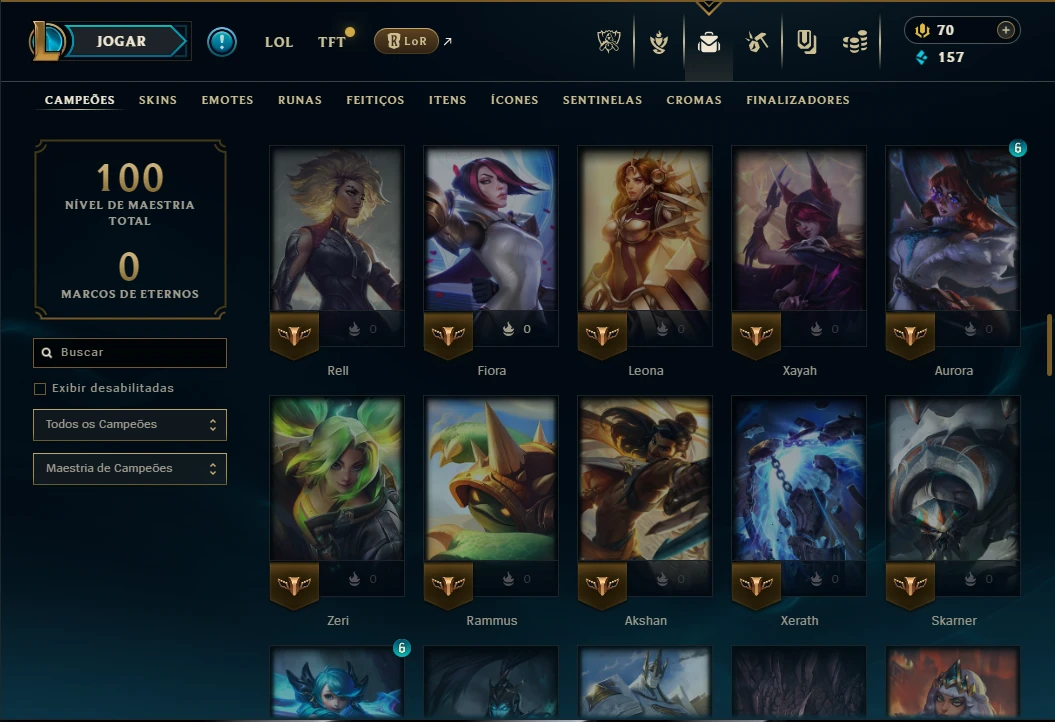 Platina 4 com 100 Champs e 17 Skins + 125 Essencias Miticas