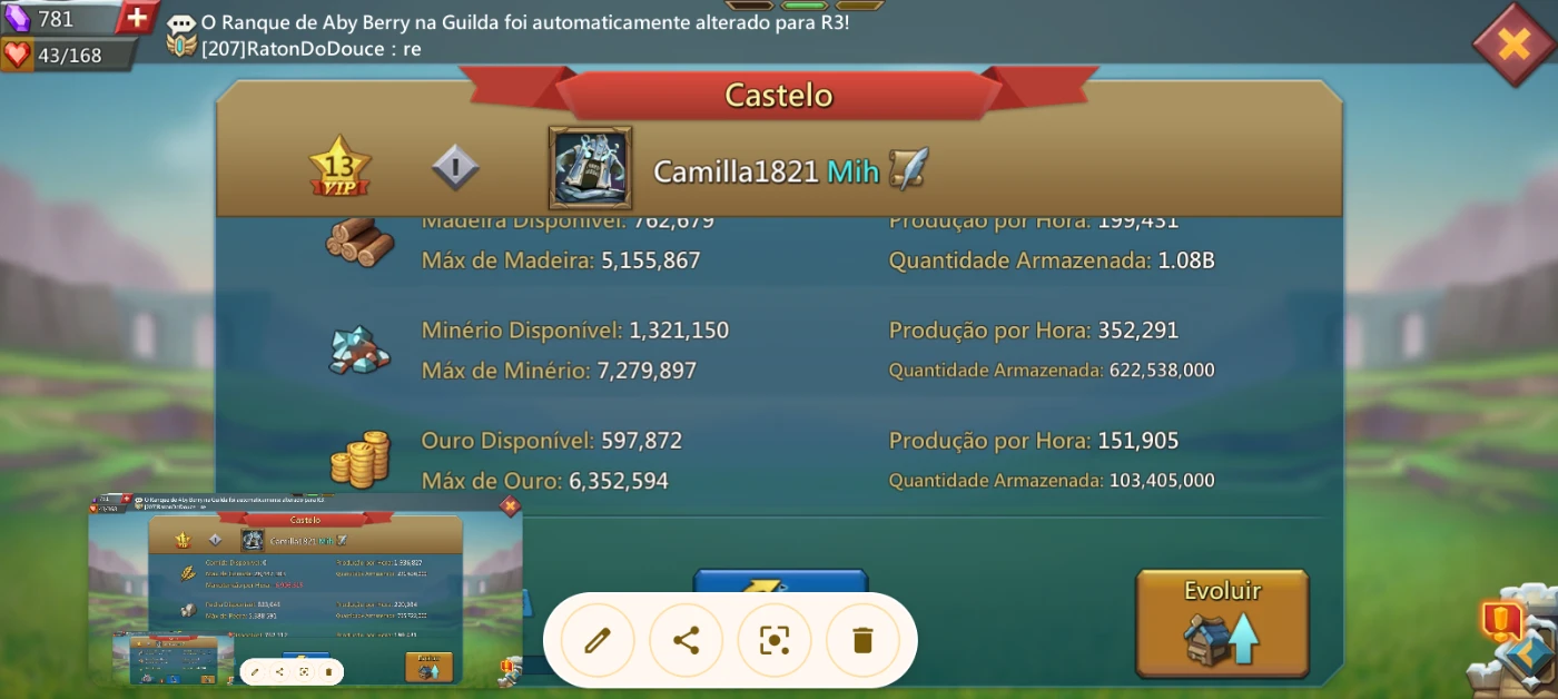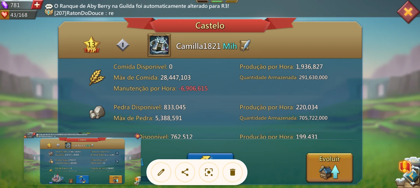Conta com pré T5, 2,5M de tropas a guilda que a conta se encontra é soberana do reino, conta boa para iniciantes.