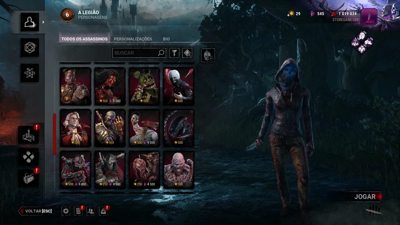 Com skins compradas, itens raros e com muitas perk's e skills upadas